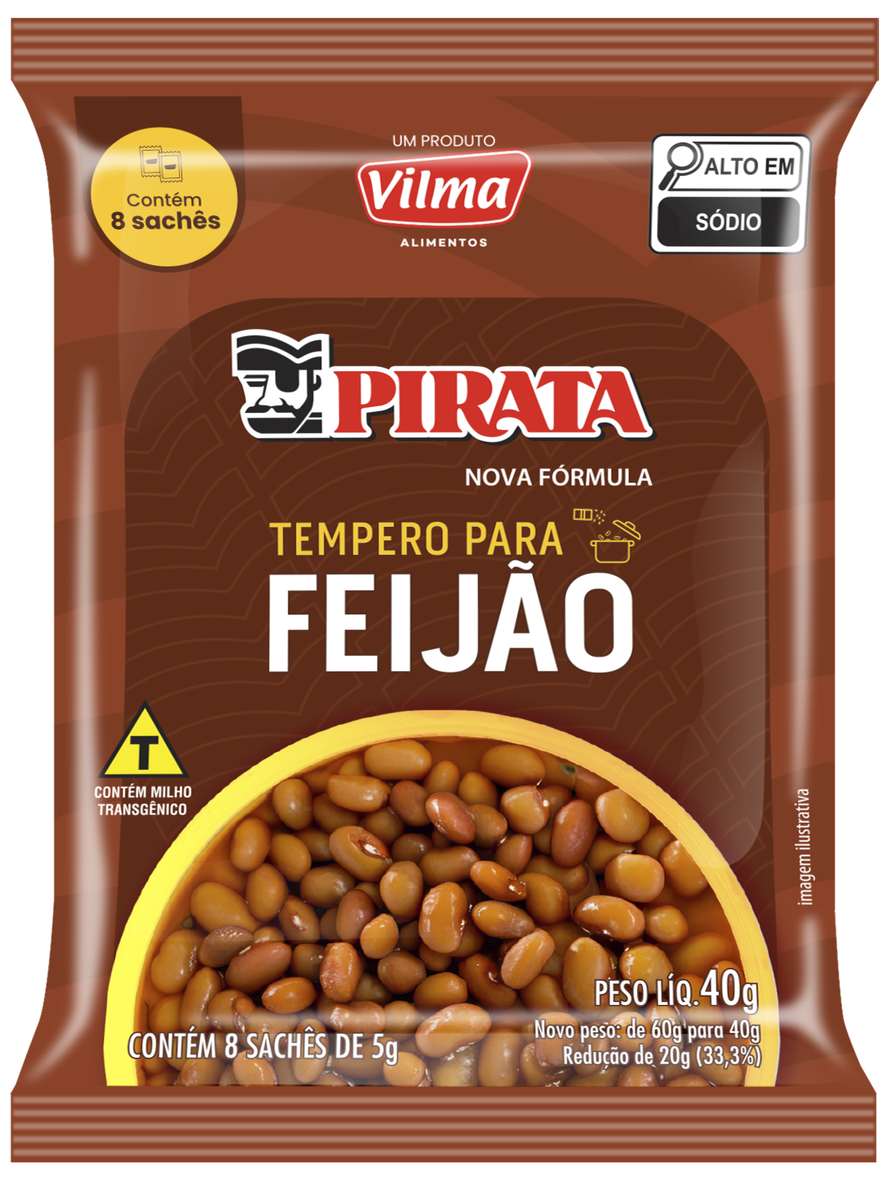 Sal, Alho em pó, Condimento preparado de alho, Pimenta do reino preta em pó (ALIMENTO TRATADO POR PROCESSO DE IRRADIAÇÃO), Cúrcuma em pó, Fubá de milho (Agrobacterium tumefaciens, Bacillus thuringiensis, Streptomyces viridochromogenes e Zea mays), Cebola em pó, Folha de louro em pó, Salsa em pó, Realçadores de sabor (glutamato monossó- dico, inosinato dissódico e guanilato dissódico), Extrato de urucum e Antiumec- tantes (dióxido de silício e fosfato tricálcico)
